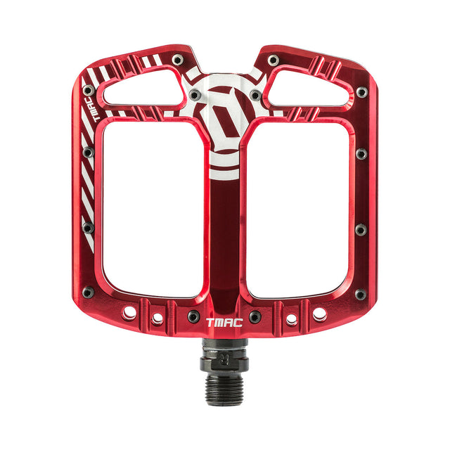 El pedal T-Mac es una hermosa combinación entre los comentarios de los ciclistas y la experiencia del diseñador, el pedal de MTB TMAC Signature Tyler McCaul es realmente "el pedal de tus sueños". Con más de dos años de desarrollo, incluidos múltiples moldes, prototipos y meses de pruebas en el mundo real, se logro un resultado final insuperable. Uno de los diseños más cóncavos del mercado , el control y el contacto que ofrece el pedal TMAC son inigualables. Calificado como uno de los 2 mejores pedales del mercado por VitalMTB con innumerables críticas positivas y un sinfín de testimonios de ciclistas, estamos increíblemente orgullosos de demostrar que los comentarios de los ciclistas, la dedicación a la perfección y la libertad de asumir riesgos son la receta perfecta para el desarrollo de componentes a medida. El pedal TMAC no solo le brinda un control preciso, sino que, con un diseño sin desplazamiento, al tener más contacto con la zapatilla. Este diseño sin desplazamiento nos permitió crear un pedal que se siente como el pedal más grande jamás fabricado con un tamaño de tan solo 110 mm x 105 mm. El detalle del mecanizado por sí solo hace de este pedal de MTB una obra de arte y te garantizamos que quedarás impresionado con la sensación y el rendimiento de estos pedales... ¡Estos realmente son "el pedal de tus sueños"!